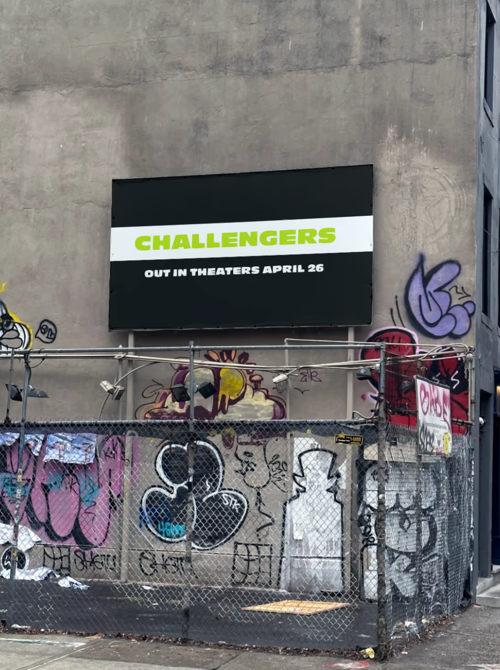 For this school project, I reimagined the marketing campaign for Challengers with the goal of engaging an audience that the original promotion failed to capture. While the official campaign lacked focus and struggled to resonate, I developed a design strategy centered around tennis, bringing the sport to the forefront to better align with the film's themes. I designed a range of promotional materials, including posters, social media posts, billboards, a redesigned film poster, updated typography for the film title, and a new color guide to unify the film’s branding. Adobe Illustrator was my primary tool, and I sourced supporting imagery from IMDB. For the redesigned poster, I used bold typography and a chrome effect to create a modern and eye-catching design. I felt the movie required a louder, bolder font to match its intensity. Using black emphasized the boldness while keeping the design sleek. The primary palette featured tennis ball green and white to tie directly to the sport. I developed a secondary palette inspired by prominent colors found in stills from the movie, ensuring the design reflected the film’s visual tone. The new marketing campaign connected more directly to the essence of the movie, emphasizing its themes and appeal to tennis enthusiasts. My classmates, including students from graphic and interior design, praised the campaign for its cohesiveness and boldness. This project taught me the importance of time management, the necessity of mockups to visualize designs in real-world settings, and the value of creating style guides for cohesive branding. It also improved my ability to develop a unified design system within a short timeframe. While I’m proud of what I accomplished, I would love to spend more time refining the designs further.